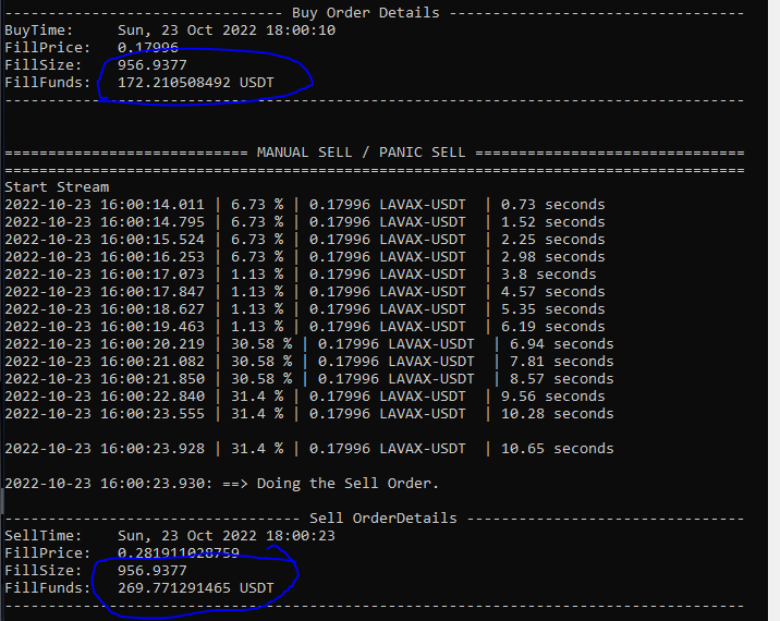 <mark style="background-color:green;">Personal opinion: I never use TP or SL. I always only use the panic sell function, where I only need to hit enter. I often use the "secondsToKeepLimitBuyOrderOpen" : 7, because there is sometimes a huge bot spike in the first second and when I wait I might be able to fill at a better price to maximize profits.</mark>