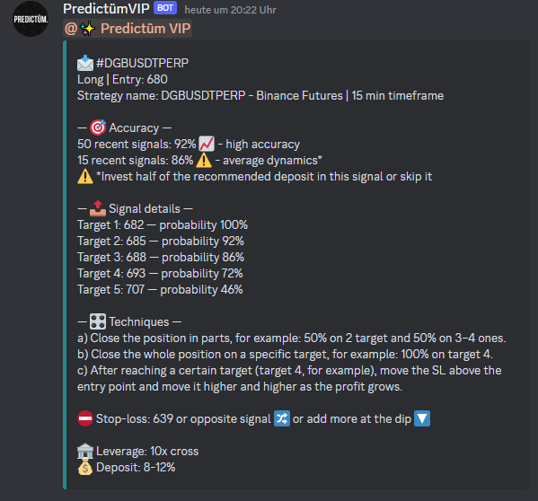 <figure><img src="https://753607342-files.gitbook.io/~/files/v0/b/gitbook-x-prod.appspot.com/o/spaces%2F-MhogE6fBOvMLDd92Qub%2Fuploads%2FNuHzX3Fhjjr1TdJztaOu%2FPredictumVIPCryptoSignals.PNG?alt=media&#x26;token=71f251e2-6829-4a38-8203-63730041f2d3" alt=""><figcaption><p>Example for predictum VIP crypto signals</p></figcaption></figure>